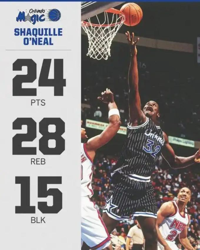 1993年11月20日年仅21岁的奥尼尔在篮网主场彻底爆发,他全场狂砍24分28篮板的超级双20数据,更离谱的是,他居然还送出了15封盖,那场史上罕见的狂暴三双!
