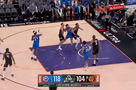 虎扑04月26日讯 NBA季后赛首轮G3,雷霆(2)客场对阵太阳(0)的比赛正在进行中。